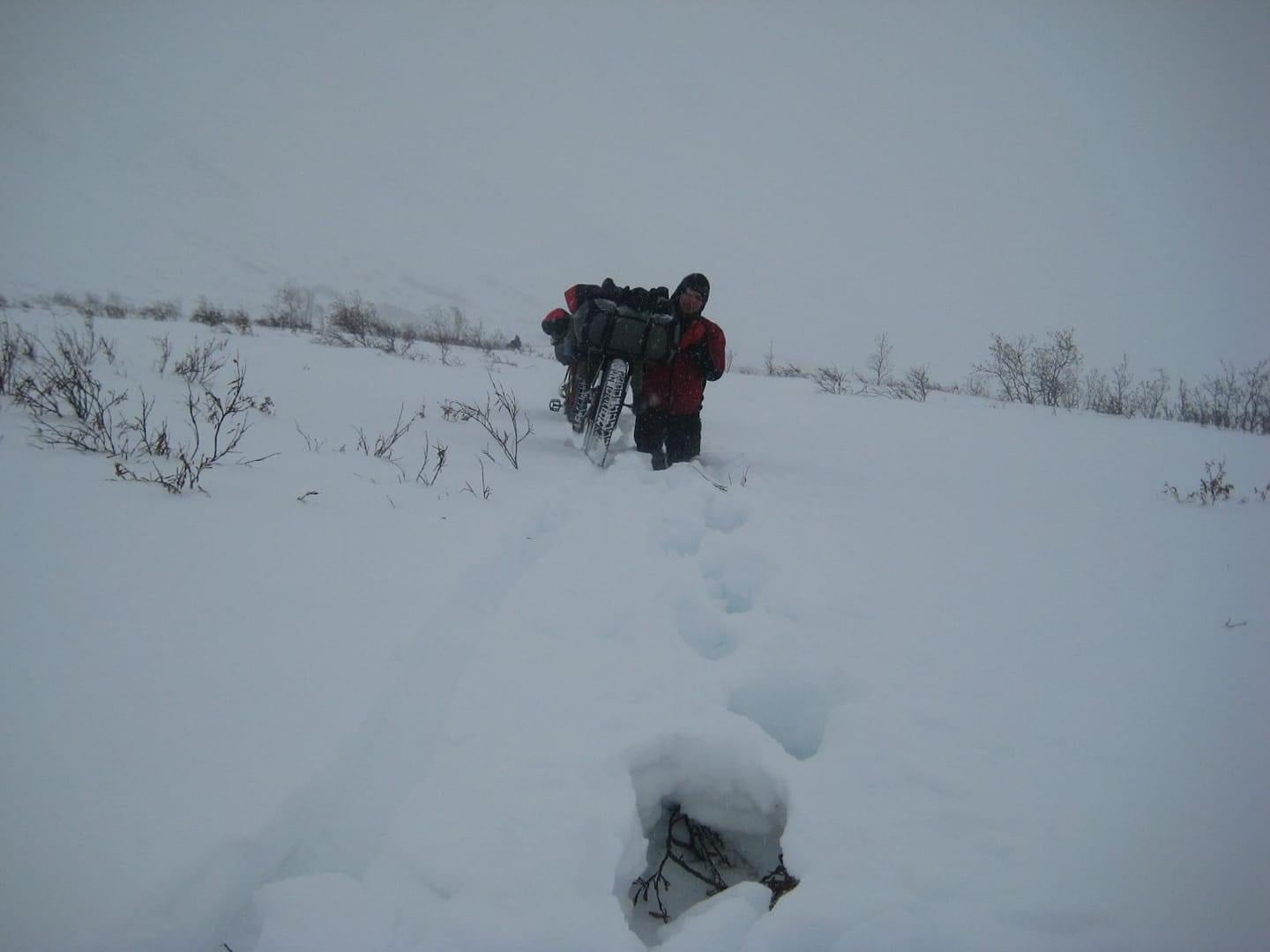 Nám začíná noc a Venca se kolem 9 hodiny ranní vydal z Bentalit checkpoint na další cestu. Předpokládá, že bude muset nocovat venku, jelikož další checkpoint je až na 200 km (teď je na 128 km). Po cestě je ještě možnost jedné zastávky asi na oběd Swentna, a pak pokud najde sruby, které jsou různě kolem tratě, tam je možnost se vyspat alespoň na verandě, ale musí je najít. Včerejšek byl velmi náročný, jelikož vydatně sněžilo, a tak byl pohyb velmi pomalý. Fotka bikera, který se v oblasti Rainy Pass po stehna propadal do sněhu a vedle sebe tlačí kolo, mluvila za vše. Venca řeší pár puchýřů a trošku víc si naložil na záda do batohu, takže záda dostaly zabrat, ale batoh odlehčil a to snad pomůže. Teploty jsou mrazivé, ale dnes to bude za slunce a bez sněhových přeháněk. Více uslyšíte zítra ve vstupech, zřejmě v těchto časech 7.15, v 10.30 a 17.30 hod na Radio Beat s Petrem Šimáčkem (Městská cyklistika). Více informací se dočtete různě na webech a sociální síti Iditarod Trail Invitational.