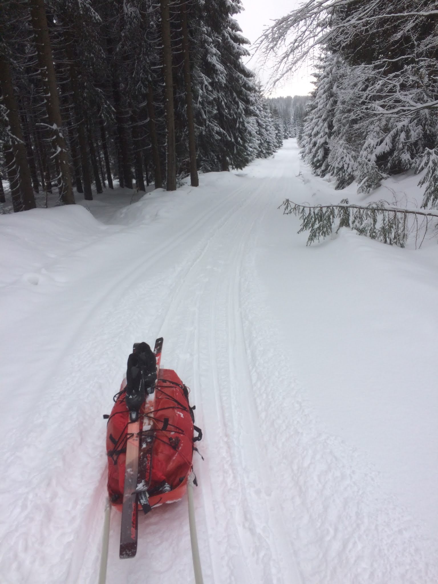 Časový limit jsem si určil na sedm dní. Sehnal jsem si backcountry běžky abych lyžařům nešlapal ve stopě, zapřáhl za sebe saně a vyrazil jsem v dopoledních hodinách od paneláku rodičů v Jablonci.